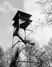 A steel observation tower used to stand on top of Mount Joy, the highest elevation in the main park area, but it was closed in the 1980s because of deterioration and liability concerns. It was removed and shipped to a private area near Wellsboro, Pennsylvania, where people can still climb it.