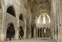 Valmagne Abbey was founded as a Benedictine abbey in 1138 but only twenty years later was attached to the Cistercian Order by decree of Pope Hadrian IV, where it remained until the French Revolution when monasteries in France were confiscated by the state and either sold or destroyed.[2] Valmagne escaped demolition and was sold intact to a Monsieur Granier-Joyeuse in 1791 who converted the abbey church into a wine cave for the maturing of wine in large barrels,[3] a function it continues to serve today.