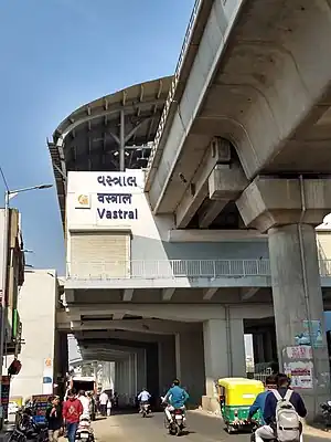 Vastral is an elevated metro station on the East-West Corridor of the Blue Line of Ahmedabad Metro in Ahmedabad, India. This metro station consists of the main Hiraba Higher Secondary School and Industrial Training Institute (ITI) in south Vastral. This metro station was opened to the public on 4 March 2019.[1][2][3][4]