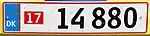 - ↑ Style used before 1976. For historical/antique vehicles, available upon special request. Plates representing 1950-1958 use only one prefix letter, with the letter corresponding to a Danish city or county (amt)