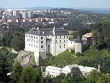 The Velké Meziříčí Castle is the landmark of the town. The original Romanesque-Gothic castle was rebuilt in the Renaissance style in the 16th century and after a fire in 1723, Baroque reconstruction was made. Today it houses the Velké Meziříčí Museum. The museum was founded in 1893 and includes historical and scientific collections, a collection of cubist furniture, and an exhibition on the construction of roads and bridges.[9]