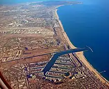 In 1839, a region called La Ballona that included the southern parts of Venice, was granted by the Mexican government to Ygnacio and Augustin Machado and Felipe and Tomas Talamantes, giving them title to Rancho La Ballona.[3][4][5] Later this became part of Port Ballona.
