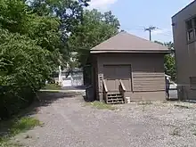 The first station at Verona was built in 1891 as one of the original stations on the Caldwell Railway, a short branch line off the New York and Greenwood Lake Railroad. When the rail line opened on August 3, 1891, the line served Verona along with Overbrook Hospital (at that point also in Verona) and the neighboring borough of Caldwell.[6] The service on the Caldwell Railway was taken over by the New York & Greenwood Lake in 1896, which was leased by the Erie Railroad a year later.[7] The first station building burned down fourteen years later. The freight station nearby avoided catching fire and did remain in service. When neighboring Caldwell got a new station depot built by the Erie, a team of horses carted the old 1891 station depot through the snow to Verona and installed it as the new station.[8] The relocated station building was a one-story wooden batten depot.[9]