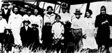 A civic reception was also held in Dingo on 23 November 1921.[36] Roffey flew from "Melbadale" to Dingo with his father as a passenger to attend the reception.[36] When Roffey attempted to land his plane in the main street of Dingo, he collided with a parked car and two gate posts as he attempted to navigate around the obstacles in the street.[36][37] Despite this, his fellow members from the Dingo Cricket Club hoisted him up on their shoulders and took him to the Dingo Hall where the civic reception was being held.[36]