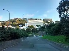 The Gordon Wilson Flats, with Victoria University of Wellington's Kelburn Campus visible on the hill above.