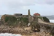A local Galician legend also claims that when the Vikings arrived at the mouth of the river Masma, in northern Galicia, Gonzalo, the holy Bishop of the local diocese of Britonia, from atop of a hill prayed for protection from the heavens against the forthcoming attack: a major storm was unleashed, sinking most of the flotilla but a ship that could flee to warn the rest of the fleet.[27][28] A series of early medieval rock castles placed atop hills and mountains with large visual field over the ocean, extending along the coasts of Galicia, have been tentatively identified as temporary shelters and watchtowers built by local communities or lords against Norse raids.[29]