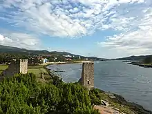 The Torres de Oeste were built circa 1020 to protect the seaways into Santiago de Compostela, Galicia
