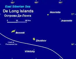 Vilkitsky Island (Russian: Остров Вильки́цкого, romanized: Ostrov Vilkitskogo; Yakut: Вилькицкай Aрыыта, romanized: Vil'kitskay Arııta) is the southernmost island of the De Long group in the northern part of the East Siberian Sea. The nearest island is Zhokhov Island. Administratively Vilkitsky Island belongs to Yakutia, an administrative division of the Russian Federation.[1]