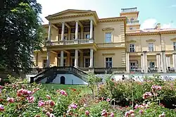 Villa Lanna (Czech: Lannova vila) is a Neo-Renaissance landmark building located in a residential quarter of Bubeneč in Prague 6, Czech Republic. It is a property of the Academy of Sciences of the Czech Republic and is used for representative purposes such as scientific symposia, jubilee festivals and also as a hotel.
