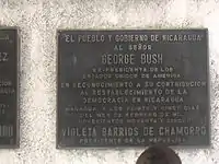 When Chamorro was elected, President George H. W. Bush removed the embargo that Ronald Reagan had imposed during Sandinista rule and promised economic aid to the country.[63] In addition, the United States paid off the past-due debts of Nicaragua that were owed to private banks, the International Monetary Fund (IMF) and the World Bank.[64] Some people in Chamorro's campaign team were hoping to get $1 billion in aid from the United States to help rebuild the country after the years of civil war,[65] but the Bush administration instead gave $300 million to the country in the first year of Chamorro's presidency, 1990, and $241 million the year after.[66] Given the devastation that Nicaragua had faced, this aid was not enough to make any serious improvement,[67] and the renegotiated loans created even more debt.[64]