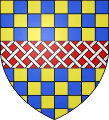 Arms of Cheyne, Viscount Newhaven: Chequy or and azure, a fesse gules, fretty argent