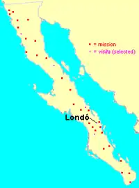 The Visita de San Juan Bautista Londó was a Catholic visita located at the Cochimí settlement of Londó in what is now Loreto Municipality, Baja California Sur, Mexico. The visita was founded by Jesuit missionaries Juan María Salvatierra and Francisco María Piccolo in 1699 as an extension of Misión de Nuestra Señora de Loreto Conchó.