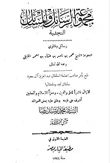 Salafi scholar Muhammad Rashid Rida (Arabic: محمد رشيد رضا; 1282 – 1354 A.H) made vital contributions in the rehabilitation of Wahhabism across the Arab World during the early 20th-century