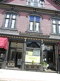 The Wales and Hamblen Building is a historic commercial building at 260 Main Street in Bridgton, Maine. Built in 1882, it is a fine example of late Italianate architecture, and one of the town's most architecturally sophisticated commercial buildings. It was listed on the National Register of Historic Places.[1]