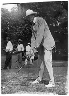 In 1911, Tuckerman won the Shinnecock Hills Tournament at the Shinnecock Hills Golf Club in Southampton, New York, on Long Island.[16] He later captured the Washington Metropolitan Amateur Championship in 1914 and 1923 when Chevy Chase Country Club hosted the tournament in Chevy Chase, Maryland.[17] During his golf career, Tuckerman captured the Stockbridge Cup of the Berkshire Golf Tournament in Stockbridge, Massachusetts.[18] He also played in the U.S. Senior Golf Association Tournament[19] and the seniors international triangular matches.[20]