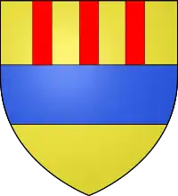 Coat of arms of Walter de Fauconberg, Lord of Fauconberg, Or, a fess Azure, three pales in chief Gules..