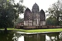 Originally, Sukhothai was a Khmer empire's outpost named Sukhodaya.[2][3][4] During the reign of Khmer Empire, the Khmers built some monuments there, several of them survived in Sukhothai Historical Park such as the Ta Pha Daeng shrine, Wat Phra Phai Luang, and Wat Sisawai.[5] About some 50 kilometer north of Sukhothai is another Khmer military outpost of Si Satchanalai or Sri Sajanalaya.[6][7]