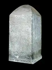 Noen Prasat or Palace Hill (Thai: เนินปราสาท) is the remains of the royal palace of the Kingdom of Sukhothai. The Noen Prasat was discovered in 1833 by Mongkut, who had made a pilgrimage to the north of Siam as a monk. The palace was built on a square base with the dimensions of 200 x 200 meters. Nearby were two small ponds where the archaeologists found the remains of terracotta pipes which probably been used to supply water from a city lake to the ponds. In the southwest, there are the remains of a 1.5-meter-high (4.9 ft) brick platform on which they found ashes and bones inside, so It can be assumed that it was the royal cremation place. The Ramkhamhaeng stele was discovered here by Mongkut. He also discovered the so-called "Manangasila Throne" (Thai: พระแท่นมนังคศิลาอาสน์), an approximately 1m x 2, 50m x 15 cm large slab of gray stone, which is decorated with lotus petals depiction. The Ramkhamhaeng Stele says that Ramkhamhaeng erected this stone throne in the sugar palm grove. Mongkut took these finds to Bangkok.