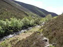 The Water of Aven (or A'an) (Scottish Gaelic: an t-Uisge Bàn) is a tributary of the Water of Feugh, itself the largest tributary of the River Dee, Aberdeenshire, Scotland. The Water of Aven rises at Loch Tennet, where the historic counties of Aberdeenshire, Angus and Kincardineshire meet and flows for approximately 15 km to its confluence with the Feugh near Whitestone.[1][2] The Water of Aven forms the historic boundary between Aberdeenshire and Kincardineshire for its entire length[3] and the lower 4.5 km are designated as part of the River Dee Special Area of Conservation, due to its importance for Atlantic salmon and Eurasian otter.[4]