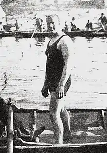 German sources do not list Hans Aniol, Max Hainle, or Herbert von Petersdorff as members of the Berliner Swimming Club, mentioning Gustav Erpf, Asmus Simonsen, and Max Schöne instead, but Mallon notes that there is proof contemporary to the tournament for the participation of only the former trio. Three members of the Brussels Swimming and Water Polo Club, Georges Romas, Guillaume Séron, and A. R. Upton, are also left off of some lists despite evidence that they participated in the first round.[5] The roster for the Osborne Swimming Club of Manchester as listed by the International Olympic Committee is Thomas Coe, John Henry Derbyshire, Peter Kemp, William Lister, Arthur G. Robertson, Eric Robinson, and George Wilkinson. Lister, however, had died two weeks prior to the Games,[4] while Derbyshire, Robinson, and Wilkinson all played water polo matches in England either during the tournament or too soon after it to have traveled back from Paris in time. A list of players contemporary to the match does not include Robertson, but does list Coe and Kemp in addition to Robert Crawshaw, William Henry, John Arthur Jarvis, Victor Lindberg, and Frederick Stapleton.[4] Lindberg has been considered the first New Zealand Olympian,[8] although he "was born in Fiji to Swedish and Irish parents, lived in New Zealand from a young age and, in Paris, represented a British club."[4]