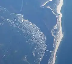 ![]() The eastern shore of Highlands borough, topped on a bluff by the Twin Lights of the Navesink | |