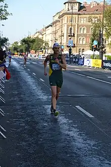 Wayne Snyman (born 8 March 1985 in Welkom)[1] is a South African race walker.[2] At the 2016 Summer Olympics, he competed in the Men's 20 km walk. He finished in 58th place with a time of 1:29:20.[3] In 2019, he competed in the men's 20 kilometres walk at the 2019 World Athletics Championships held in Doha, Qatar.[4] He finished in 38th place.[4]