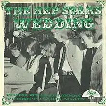 The single was also successful on neighboring country Norway's VG-lista, staying on there for 3 weeks, peaking at number 8.[37] It entered the chart on 11 June 1966 at a position of number 9, before peaking at number 8 the following week, a position it held for two weeks.[37] It exited the chart on 25 June.[37] "Wedding" was the penultimate single by Hep Stars to chart, with "I Natt Jag Drömde" becoming their final to chart in Norway.[38] The single sleeve photo was taken by Rolf Håkansson at Skrea Church, where Benny first wrote the track. The single failed to chart outside Scandinavia, something that Hedlund attributes to the lyrics: "You mustn't sing things like that about the holy matrimony! But we were stubborn and didn't want to change the lyrics."[39] This is due to the fact that the lyrics implies that the narrator isn't to keen on a stable relationship.[17] As Hedlund would later state: "We were all young anyway and didn't have a thought of getting married."[17]