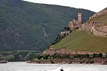 Weingut Dr. Heinrich Nägler owns a total of 8.5 hectares (21 acres), 90% of them planted with Riesling vines around Rüdesheim. The estate stretches across the „Rüdesheimer Berg“ with steep slope viticulture and presence of quartzite and slate in changing shares[5] and comprises part of the top vineyard sites “Rüdesheimer Berg Schloßberg”, “Rüdesheimer Berg Roseneck”, “Rüdesheimer Berg Rottland”, “Rüdesheimer Bischofsberg” and “Rüdesheimer Drachenstein” vineyards. Wine writer Stephen Brook appreciated some of the ice wine of the Rüdesheimer Berg Rottland in his book Liquid Gold.[6]