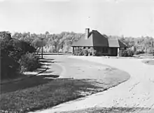 Wellesley Farms station, which was designed by Henry Hobson Richardson prior to his death in 1886, opened south of Glen Road to replace Rice's Crossing in 1890.[4] Like many B&A stations, it had attractive landscaping; Charles Mulford Robinson called it "unique, and to be remembered" in 1904.[6]