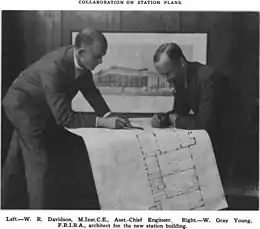 In 1929, W. Gray Young, an architect known for his neo-Georgian styles, of the Wellington architectural firm of Gray Young, Morton & Young, was selected (without a design competition) to design the new station, over the Auckland firm of Gummer & Ford, which had designed Auckland railway station. Gray Young, Morton and Young was formed in 1923 and consisted of William Gray Young, Hubert Morton and Gray Young's brother Jack. The firm had recently finished large commissions for Victoria University, designing the Stout Building (1930) Weir House (1930), and later the Kirk Building (1938).