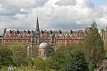 Built as a western expansion of the New Town, the northern part of the West End sits on the Water of Leith river and forms part of Edinburgh's UNESCO World Heritage Site.[6] The West End is contiguous with the rest of New Town and is accordingly included in the New Town Conservation Area.[7] As can be inferred therefore, this area of the city contains many buildings of great architectural beauty, primarily long rows and crescents of Georgian terraced houses.[8] The West End also incorporates many of the New Town Gardens, a heritage designation since 2001.[9]