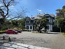 The West Japan Industrial Club (Nishi Nihon Kogyo Kurabu 西日本工業倶楽部 or former Matsumoto residence) is in Tobata ward, Kitakyushu. It was designed by Tatsuno Kingo and is his only surviving private house. (See Finn, pp. 216-218 for a detailed description of the architectural features and internal design.)