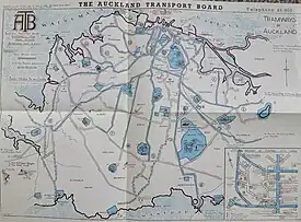 Before the tram track extension to the zoo in 1923, the route along Surrey Cres turned right onto Richmond Rd at Ambury's Corner and continued to the Grey Lynn terminus at Francis St, the closest point to the new zoo.[78] During the following years, trams either ran from the Grey Lynn or zoo terminus[79] to the city and on to Herne Bay. In 1931, the Herne Bay connection was discontinued and the Westmere service commenced.[80] Service ceased on the Richmond Rd leg in 1932,[81] as planned.[82]