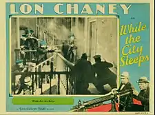 While the City Sleeps is a 1928 American synchronized sound crime drama film about a tough New York City police detective, played by Lon Chaney, out to catch a murdering gangster. While the film has no audible dialog, it was released with a synchronized musical score with sound effects using the sound-on-film Western Electric Sound System process. The film was directed by Jack Conway, written by Andrew Percival Younger, and co-starred Anita Page, Carroll Nye, Wheeler Oakman, and Mae Busch.[1]