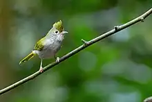 The white-bellied erpornis (Erpornis zantholeuca) or simply erpornis is a species of bird. It is the only member of the genus Erpornis. This bird is found in Bangladesh, Bhutan, Brunei, Cambodia, China, India, Indonesia, Laos, Malaysia, Myanmar, Nepal, Singapore, Taiwan, Thailand, and Vietnam. Its natural habitat is subtropical or tropical moist montane forests.