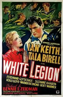 White Legion is a 1936 American drama film written and directed by Karl Brown. The film stars Ian Keith, Tala Birell, Ferdinand Gottschalk, Suzanne Kaaren, Lionel Pape, Rollo Lloyd, Teru Shimada and Nigel De Brulier. The film was released on October 25, 1936, by Grand National Films Inc.[1][2][3]