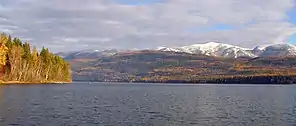 ![]() View from Whitefish Lake State Park beach looking north to Whitefish Mountain Resort in autumn, courtesy Mike Koopal | |
