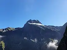 Mount Elliot | 1,990 metres (6,530 ft) | 44°46′47″S 167°47′06″E / 44.77979°S 167.78501°E | ![]() Mount Elliot with Jervois Glacer in 2022. |