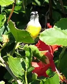 The avifauna of the West Indies is predominantly of tropical North American (southern North America and Central America) origin with aggressive South American species having colonized the area only recently.[24] The South American families occurring in the Greater Antilles are the hummingbirds (Trochilidae), tyrant flycatchers (Tyrannidae), bananaquit (Coerebidae) and tanagers (Thraupidae), all of which are represented in Puerto Rico. The prevailing theory suggests that bird fauna colonized the West Indies by transoceanic dispersal during the glacial periods of the Pleistocene. The most primitive West Indies birds are the todies which have an endemic representative in Puerto Rico, the Puerto Rican tody.[24]