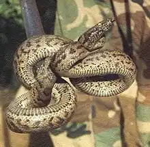 The 11 snake species occurring in Puerto Rico are generally considered non-venomous, although research has concluded that at least one species, the Puerto Rican racer (Alsophis portoricensis), secretes venom.[29] These species belong to 3 families and 4 genera: Typhlopidae (genus Typhlops), Boidae (Epicrates) and Colubridae (Alsophis and Arrhyton). The largest snake in Puerto Rico is the endemic Puerto Rican boa (Epicrates inornatus) with a maximum length of 12 ft (3.7 m). The diet of snakes in Puerto Rico consists of reptiles (Ameiva, Anolis, geckos), coquís and other frogs, and, to a lesser extent, mice, birds and bats (exclusively by the Puerto Rican Boa).