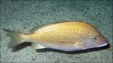 Three types of habitats, mangroves, reefs and seagrasses, are found in Puerto Rico's ocean waters. A total of 677 fish species live in these habitats;[13] 242 being reef species.[36][37] Fish species found in Puerto Rican reefs are representative of the general Caribbean fauna. Common reef fishes include wrasses, damselfishes, white grunts (Haemulon plumieri), bluestriped grunts (Haemulon sciurus), queen parrotfish (Scarus vetula), and sharks (family Carcharhinidae).[38] Sea breams (Archosargus rhomboidalis) and yellowfin mojarras (Gerres cinereus) are some of the species commonly found in mangrove habitats.[38] Other species of interest include flatfishes, with 21 recorded species,[39] and sharks, with more than 20 species. Oceanic whitetip sharks and silky sharks are common in the Mona Passage.