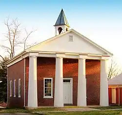 Wilkesboro Presbyterian Church is a historic church at 205 E. Main Street in Wilkesboro, North Carolina. It was built in 1849–50 in the Greek Revival style then popular, with a prominent tetrastyle portico. The brick exterior is otherwise plain, with a somewhat incongruous Victorian-era belfry over the portico. The interior is similarly plain, with plastered walls and a wood board ceiling. The church was built by a man named Dameron for $1,040.[2]