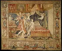Pannemaker was born circa 1510 in Brussels. His father Pieter was head and most famous member of the Pannemaker family tapestry workshop.[2] Trained by Pieter, Willem rose to become the most renowned tapestry weaver in contemporary Europe, many of his pieces being purchased by the Habsburg court during the 1540s and 1560s.[2][3] He derived particular artistic inspiration from the works of Raphael.[1] One of his best-known pieces is the Conquest of Tunis. He died in 1581.[3]