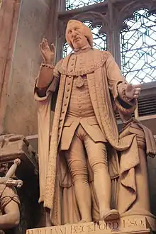 Sir William Beckford (December 1709 – 21 June 1770) was a Jamaican-born planter and Whig politician who twice served as Lord Mayor of London in 1762 and 1769. One of the best known political figures in Georgian era London, his vast wealth derived from the sugar plantations and hundreds of slaves he owned in the British colony of Jamaica. In Britain, Beckford was a supporter of the Whig party, including Prime Minister William Pitt, 1st Earl of Chatham. He also publicly supported progressive causes and frequently championed the London public.[1][2]
