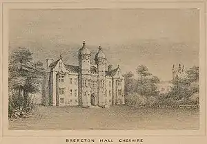 Brereton was the son of Sir William Brereton of Brereton, Cheshire and was baptised on 6 February 1550. He was about nine when his father died in 1559 and he succeeded to the extensive family estates. He was educated at Oxford University and was awarded a BA in 1568. He was admitted at Lincoln's Inn in 1569. From 1573, he was JP for Cheshire and was High Sheriff of Cheshire from 1581 to 1582. In 1586, he built a mansion at Brereton (Brereton Hall) which was similar to Rocksavage, the house of his father-in-law Sir John Savage. He was knighted in 1588. He was commissioner for musters in 1595 and in 1596.[1]