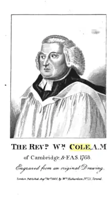 - ↑ "Cole, William (CL732W)". A Cambridge Alumni Database. University of Cambridge.