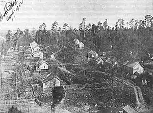 The town was planned by a company architect/engineer with a main street that had the company store, a hospital, hotel and other commercial buildings, surrounded by large lawns and decorative landscaping. Residential streets were laid out for up to 1000 houses. Just outside of town were a railway roundhouse, blacksmith and other machine shops. Between the town and the mills on the east was an 80 acres (32 ha) lumberyard.[3] The headquarters building was the town's financial center where employees were paid monthly on the tenth. It had a vault and teller booth.[lower-alpha 2][5]