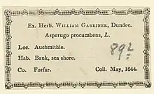 - 1 2 "Mr William Gardiner Jnr (13/7/1808-21/6/1852)". Herbaria@Home. Botanical Society of the British Isles. Retrieved 22 February 2023.