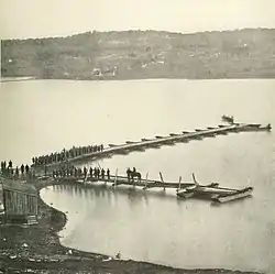 Sometime after being wounded in action at Antietam, Paul was promoted to the rank of sergeant.[13] After his regiment was reassigned to the Union Army's 1st Corps in 1862, he and his regiment then fought in the Battle of Fredericksburg (December 11–15, 1862). Ordered to fatigue duty in the New Year, they then participated in the Mud March led by Major-General Ambrose Burnside (January 1863) and the intense fighting of the Chancellorsville Campaign (April 30–May 6) before heading for Pennsylvania. Assigned to the Gettysburg Campaign, they then fought in the Battle of Gettysburg (July 1–3), and pursued the Confederate Army as it retreated into Maryland and Virginia. Reassigned to picket duties along the Rappahannock River that fall, the regiment skirmished periodically with Confederate troops while also participating in the destruction of enemy-controlled segments of the Manassas and Alexandria Railroad and repair of Union-controlled lines before being ordered to participate in the Mine Run Campaign in December.[14]