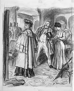 In 1904, Glackens married Edith Dimock, the daughter of a wealthy Connecticut family.[9] She was also an artist, and they lived together in a Greenwich Village townhouse, where they raised two children, Lenna and Ira. If many of their artist friends lived a bohemian life by the standards of the day, such was not the case with William and Edith Glackens. In 1957, Ira Glackens published an anecdotal book about his father and the role he played in the emerging realist movement in art.